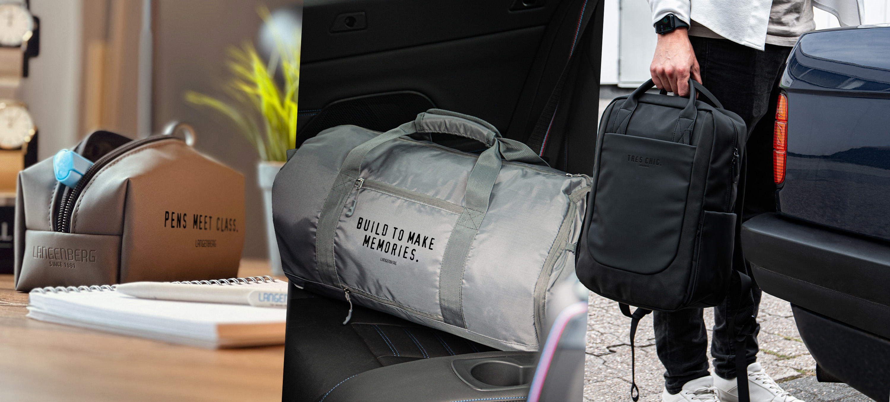 Bei Langenberg werden aus Ideen ansprechende Werbeträger. Als Marke für Marken produziert Langenberg seit 1991 immer neue Produkte, um Ihr Logo perfekt und hochwertig in Szene zu setzen. Langenberg Taschen und Schirme stehen für Qualität und nachhaltigen Werbeerfolg.
